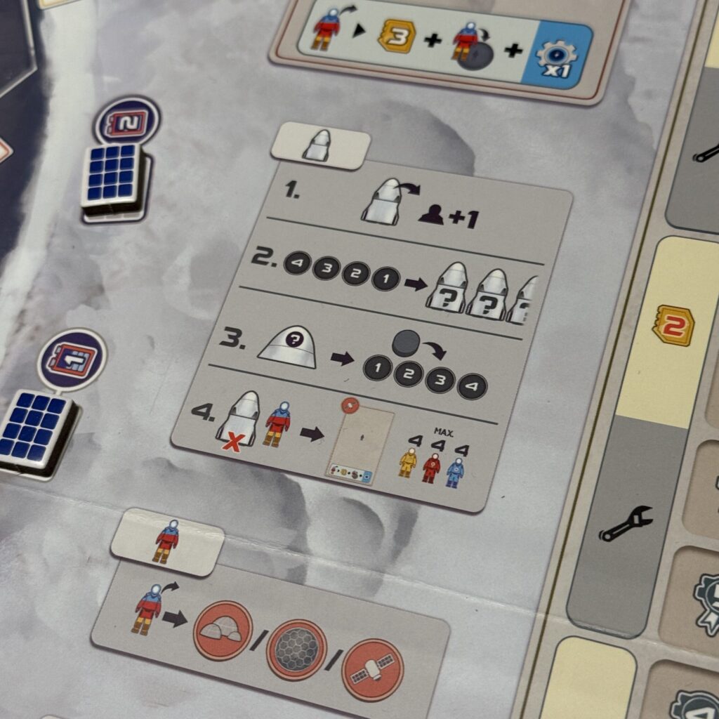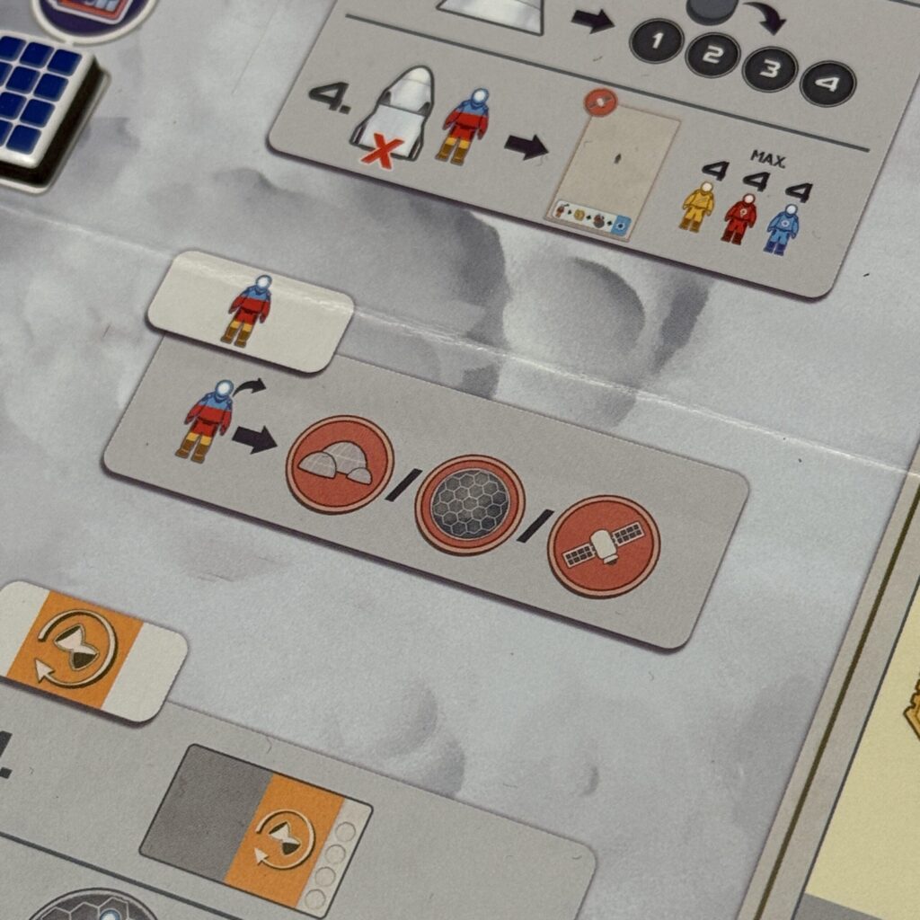 ルナ・ゲートウェイに宇宙飛行士コマを一つ置き、代わりに3クレジットを得て、ルナ・ゲートウェイに待機する宇宙飛行士コマ一つを自分の基地に回収します。その後、企業アクションを1回実行します。