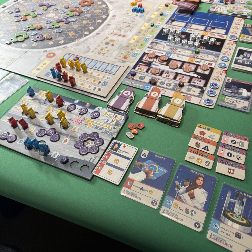 今回のゲーム、1位のプレイヤーはムーンマイニング社を軸にしてプレイされていた。序盤から終盤にかけて、プロジェクト投資で強力にタブロビルドしていた。プロジェクトカードの常時能力でかなり効率的にゲームを運んでいた。その差は広がるに広がり、ゲーム終了時には50点も差がついてしまっていた。どこかで何かしらカットしないといけなかったなと反省。これは是非リベンジさせてもらいたい。