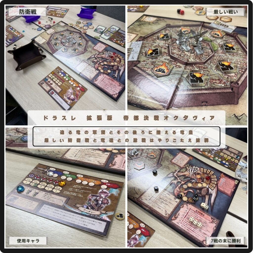 迫る竜の軍団とその後ろに控える竜皇と戦うドラスレ 拡張版の帝都決戦オクタヴィア。都市内のクエストを達成しつつキャラを成長させる。襲ってくる竜達は難敵ばかり。決戦は時に心が折れる難易度、でもそれを乗りこえて勝利した時の喜びは堪らない。