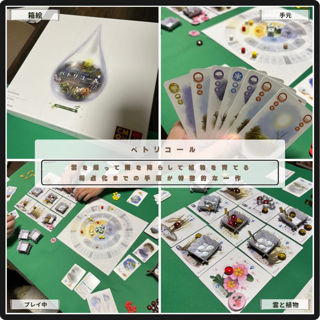 雲を操って雨を降らして植物を育てるペトリコール。雲を動かして植物に雨を降らして上げる。上手く水を撒くことができると得点に結びついていく。雲を操るための条件や雲と雲が合体するシステムなど独特のプレイ感が味わえる。