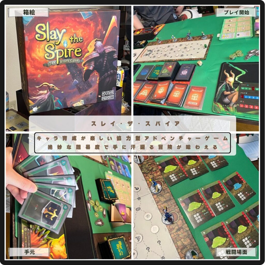 3つの階層の制覇を目指す協力型ゲームのSlayTheSpire。デッキを強化しながらダンジョンを突き進んでいく。キャラ特性を踏まえてお互いにカバーし合っての戦闘が面白い。アイテムやレリックの入手もあってキャラ育成も様々。終始ワクワクしながら冒険できる。