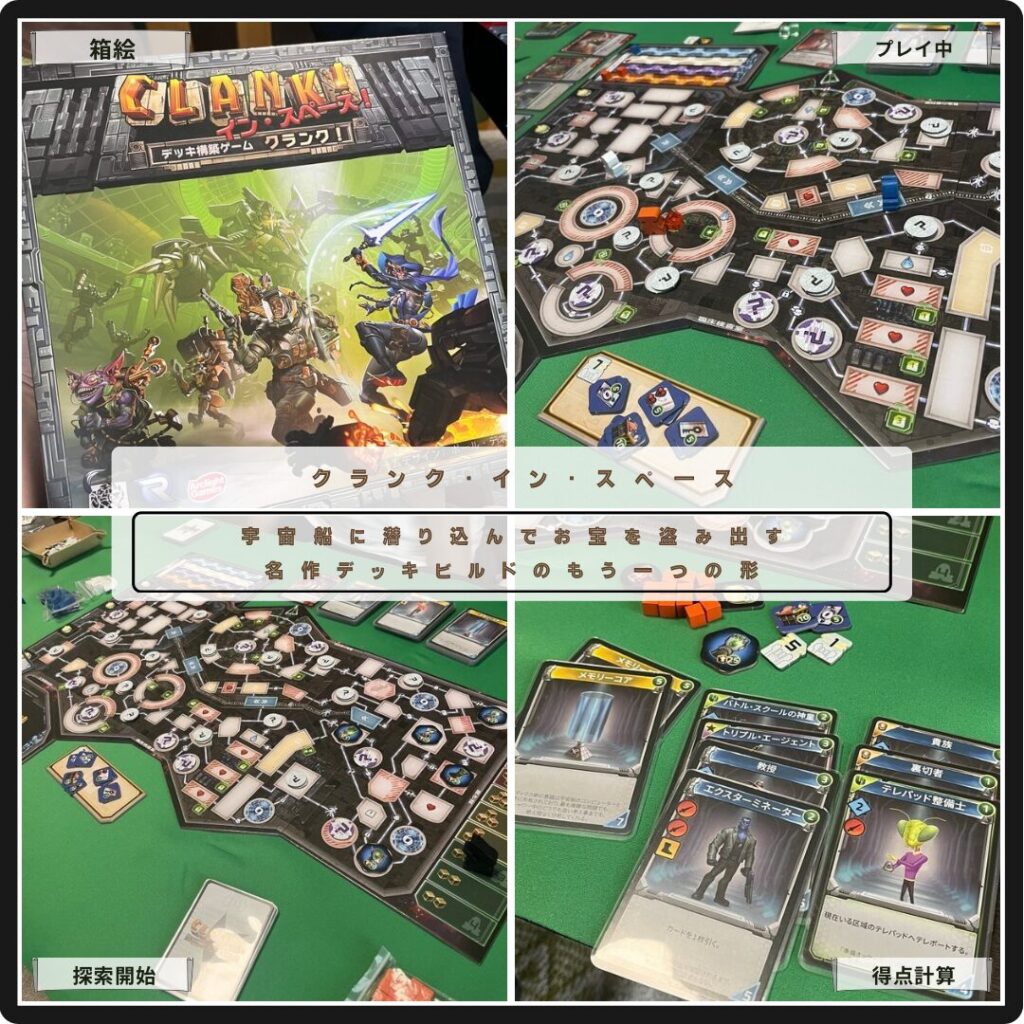 エラディクス卿の宇宙船に潜り込んでお宝を盗み出すクランク・イン・スペース。セキュリティ解除やエリアを行き来できるリフトなど新要素あり。ひっそりと盗み出すか物音を立てて豪快に盗み出すか、プレイにドラマが生まれる名作デッキビルドのもう一つの形。