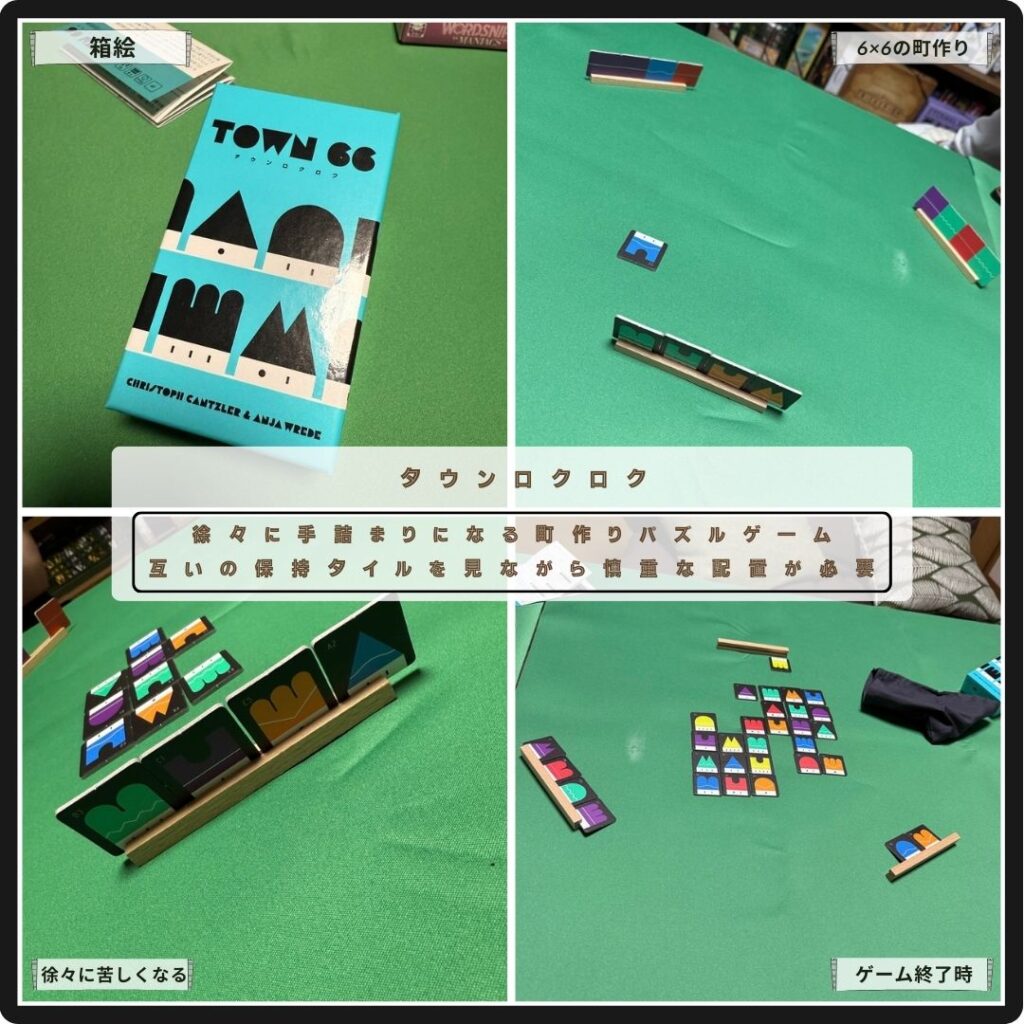 中央にタイルを配置して6×6の町を作っていく。縦列と横列を見て、形と色が重複しないタイルしか配置できない。タイルが配置できなくなると脱落、最後まで生き残ることを目指す。