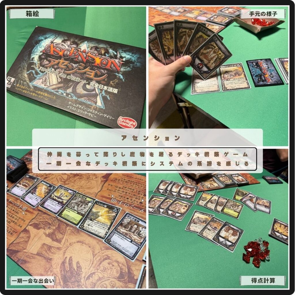 仲間を募って蘇りし魔物を屠るデッキ構築ゲームのアセンション。