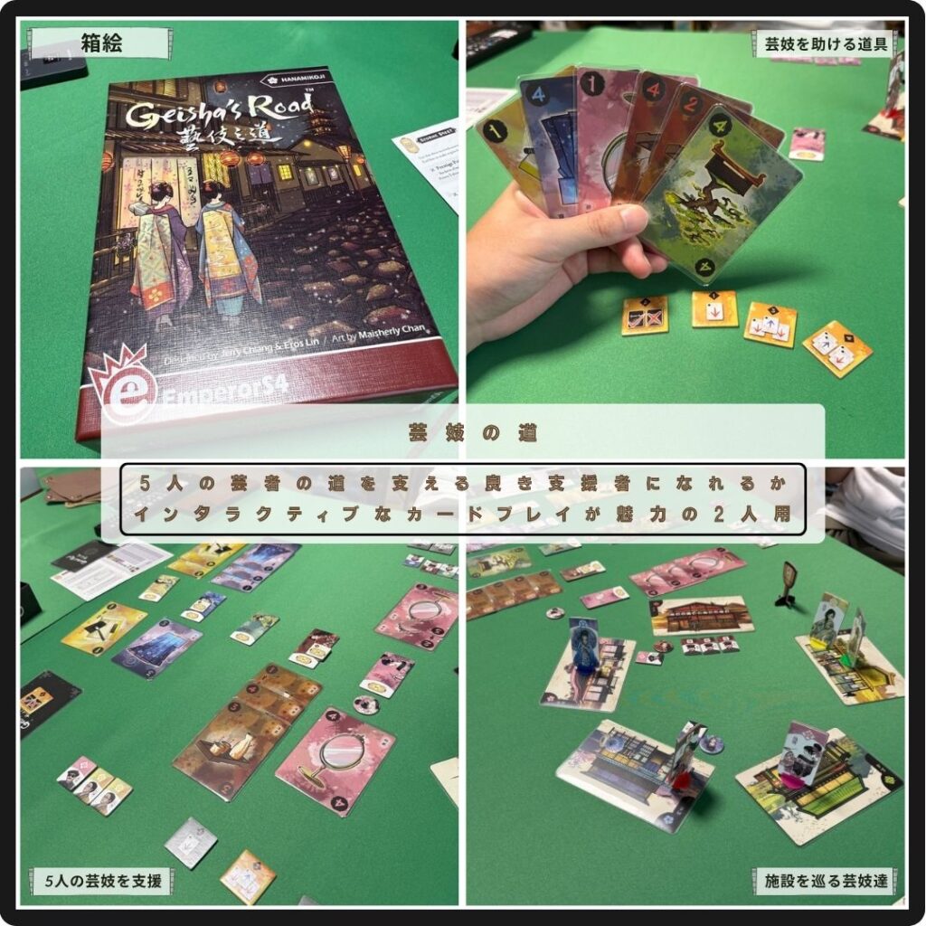 インタラクティブなカードプレイが魅力の2人用対戦ゲームの芸妓の道。