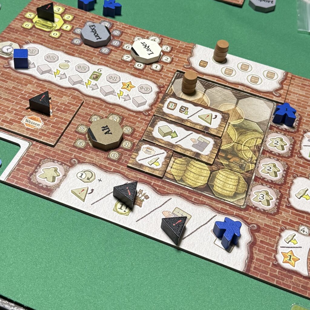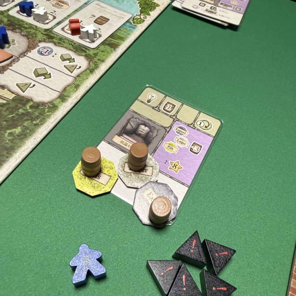 1度の出荷に3種のビールを必要とする分、大きな勝利点を入手できるカードを2枚獲得。ExportもLagerもPilsももう仕込めるようになっているので、あとはひたすら醸造して出荷するのみ。
